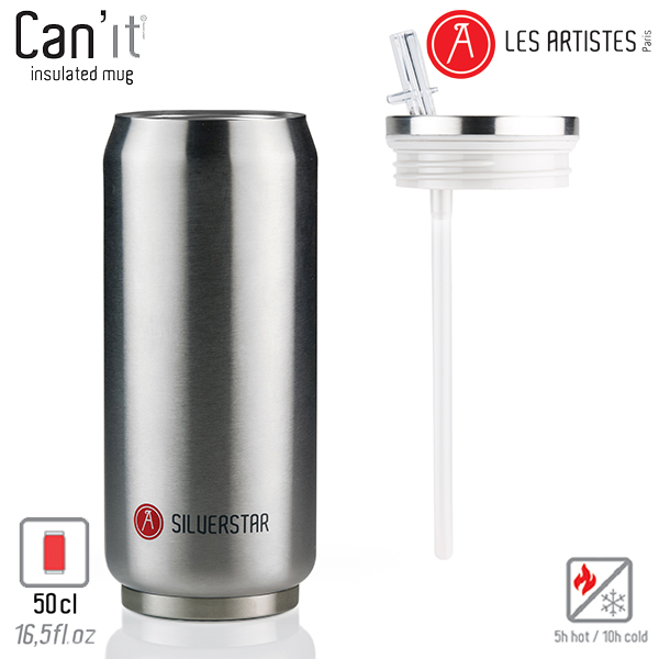 Tags: 500 ml, Bottle, Can'it, drinkware, hot or cold, Les Artistes, silver, thermos