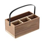 Acacia box with handle for cutlery, napkins, straws, sauce bottles…