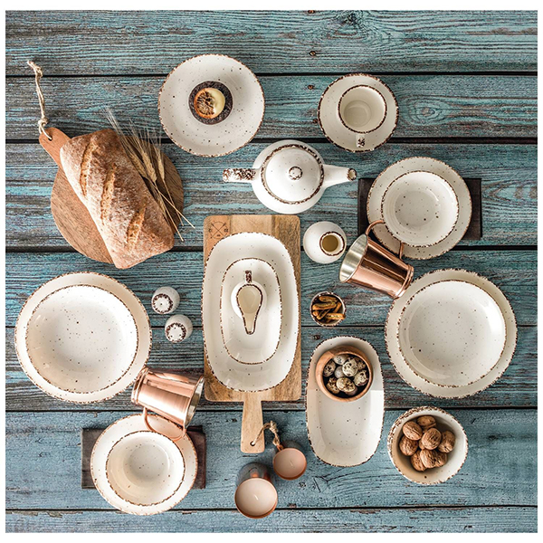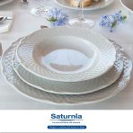 Embossed white, vintage dinnerware in a modern lifestyle.