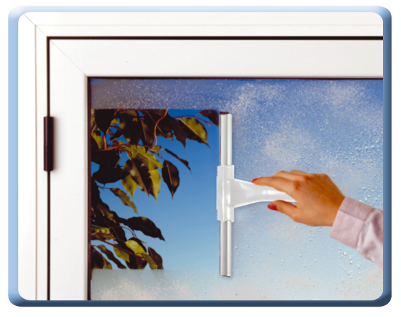 Squeegee with scraper. Cleans any type of flat surface and leaves it perfectly dry. Ideal for the home, car, etc. Fits all standard handles.
