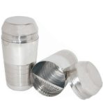 Metal cocktail shaker with bulit in strainer. The most essential accessory for any amateur or professional barman or barista.